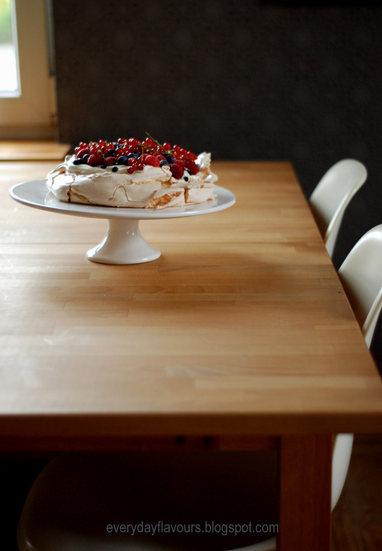 Stosuje na poniższą Pavlovę lub Pyszne ciasto migdałowe z owocami.