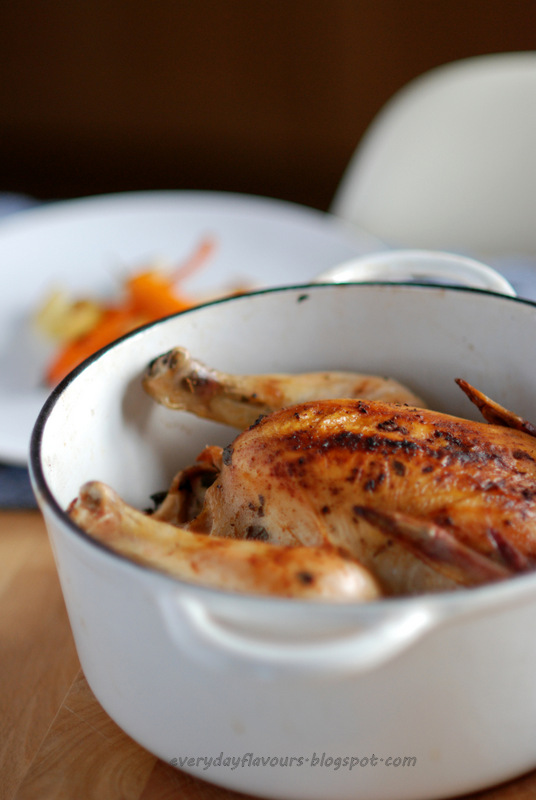Za oknem coraz bardziej jesienna pogoda, zaczynamy odchodzić od lekkich posiłków i mamy coraz większą ochotę na coś rozgrzewającego i mięsnego, więc kupuje kurcze w całości i nic tylko zostaje mi je upiec, najlepiej w jak najprostszej formie.