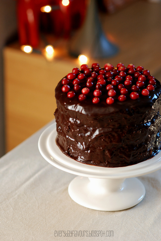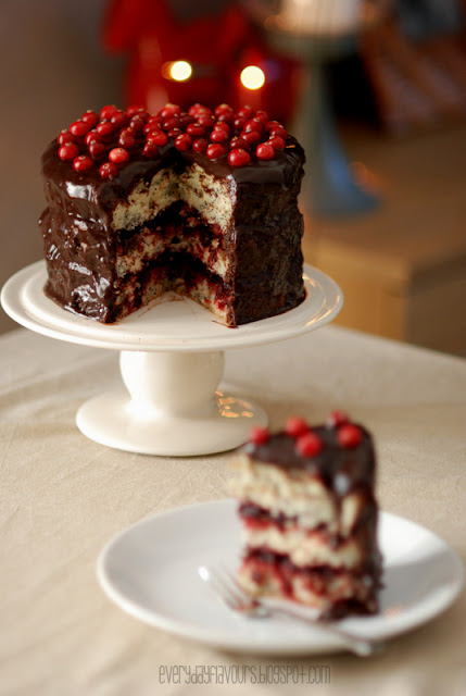 Do świąt został już tylko krok, czyli tydzień więc prezentuje dziś pyszne ciasto z żurawiną w sam raz na wigilijny stół. Blaty biszkoptu z makiem przełożone kwaskową konfiturą żurawinową, oblane ganache czekoladowym oraz zwieńczone chrupiącymi kulkami żurawiny. Prezentuje się znakomicie i też tak smakuje, więc to pozycja w sam raz na zbliżające się święta.