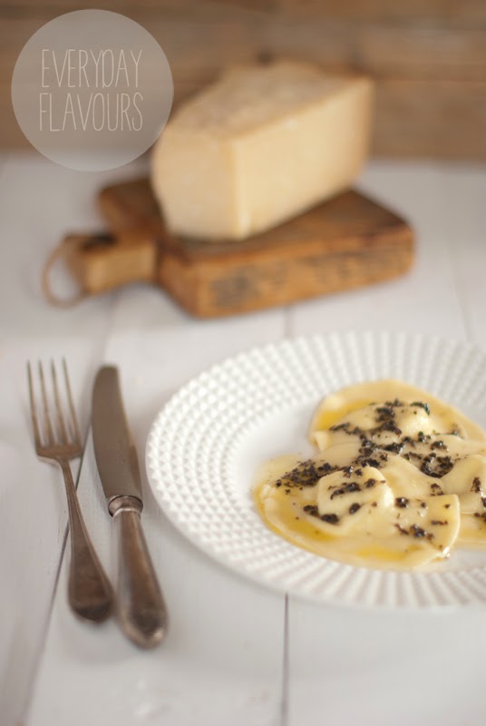 Więc gdy tylko w naszym wspólnym gotowaniu nadarzyła się okazja przyrządzić ravioli jakoś tak wszystko złożyło mi się w całość i oto są, pyszne ravioli w sosie truflowym.