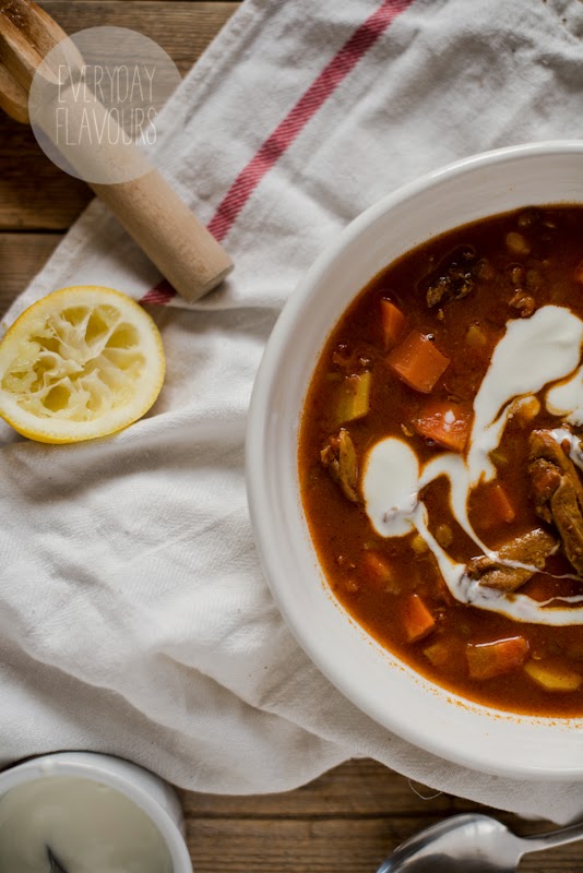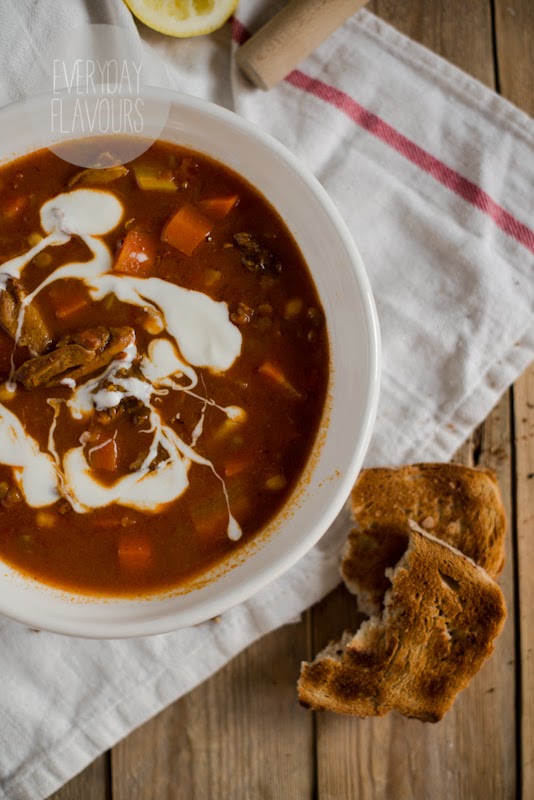 Pod tą dziwnie brzmiącą nazwą kryje się eksplozja marokańskich smaków. Porządnie rozgrzewająca zupa nie tylko zapewnia wspaniałe doznania smakowe ale także rozpala zmysły, dzięki dużej zawartości płatków chili i ostrej, wędzonej papryki. I oto chodzi. Bo pomimo że za oknem widać już zwiastuny wiosny to nadal trzeba się jakoś się ratować przed otaczającym zimnem. A co może być lepsze od takiej rozgrzewającej i sycącej zupy?