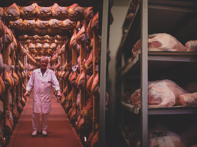 Na koniec dnia już zmęczeni, udaliśmy się do wytwórni szynki parmeńskiej. Jest to nie lada przeżycie dla mięsożerców, widząc w jednym miejscu takie ilości dojrzewającej szynki. Właściciel oprowadził nas po fabryce opowiadając o procesie produkcji, a raczej o poszczególnych etapach dojrzewania. No i ten mięsny tunel, na każdym z nas zrobił wrażenie. Wieczorem w agroturystyce oczywiście czekała na nas wyborna kolacja no i dużo butelek wina.