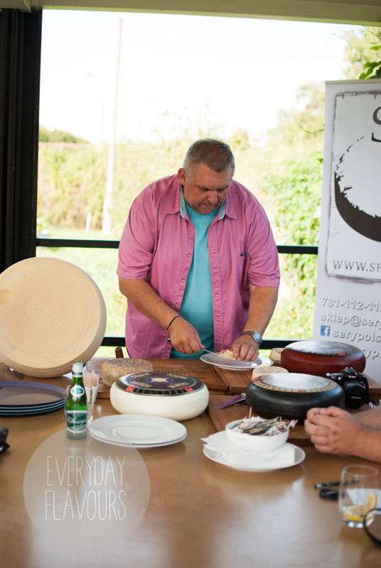 W drugim dniu udało mi się uczestniczyć w świetnym spotkaniu oraz warsztatach dla blogerów które odbyły się w Spocie. Spotkanie to dotyczyło serów i prowadził je nie kto inny jak Gienio Mientkiewicz, znany pasjonat serów, prowadzący program "Przez dziurkę od sera". Pan Gienio snuł piękne opowieści serowe, ale najlepsze w tym wszystkim było wąchanie dopiero co rozpołowionych kręgów serów i późniejsza ich degustacja. Na pewno uczestnikom tego spotkania na długo w pamięci zapadnie wielki ser emilgrana który w smaku przypomina parmezan. A także ser klasztorny, który po spróbowaniu niewielkiego kawałka wielkości paznokcia pozostaje nie tylko w pamięci ale także na podniebieniu na bardzo długo.