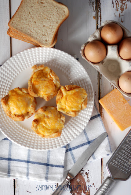 Lubię wykwintne, trochę inne śniadania niż w ciągu tygodnia. Nawet lubię je bardzo, ale bardzo często przegrywają z moją niemożnością oderwania głowy od poduszki, zwłaszcza w sobotę. W niedzielę zazwyczaj jest troszkę lepiej, lecz tylko odrobinkę. Ale naprawdę zdarza mi się, choć nieczęsto, zerwać w weekend wcześnie rano aby uformować bułeczki lub wyprodukować na śniadanie jakieś inne pyszności. Zazwyczaj motywuje mnie do tego zobaczony gdzieś przepis, częściej zdjęcie jakieś śniadaniowej potrawy lub pieczywa. W tym przypadku te śniadaniowe muffiny zobaczyłam w programie Rachel Khoo i nie mogłam o nich zapomnieć. Miałam je ciągle " w tyle głowy", aż podjęłam decyzję że w ten weekend je wyczaruje. I wiecie co, teraz nie mogę się doczekać soboty, bo były takie dobre, tylko żebym dała radę podnieść się z łóżka