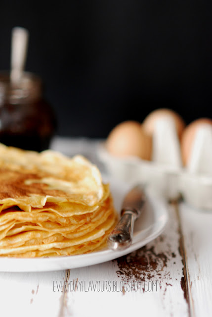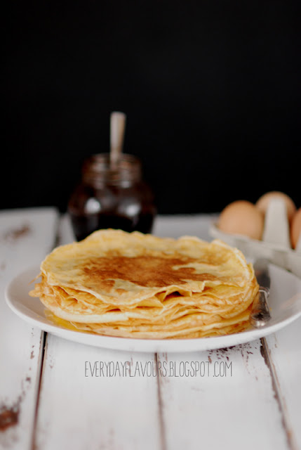 Większości osób naleśniki kojarzą się jako danie obiadowe, serwowane na słodko z dżemem, oprószone cukrem pudrem lub podawane wytrawnie z dodatkiem mięsa lub szpinaku. Ze mną było podobnie, dopóki nie trafiłam na zdjęcitego tortu. Moje wyobrażenia na temat tych cienkich placków i możliwości ich wykorzystania zmieniły się całkowicie. I nic już nie mogło mnie powstrzymać przed wylądowaniem w kuchni, chwyceniem za patelnię i usmażeniem wielkiej porcji naleśników, które potem wykorzystałam do zrobienia tortu. Ale tort już nie długo, a Was zostawiam z naleśnikami.
